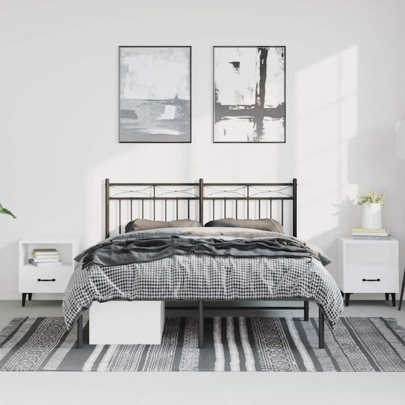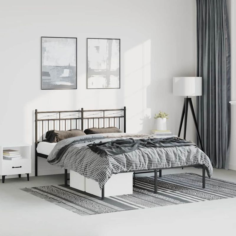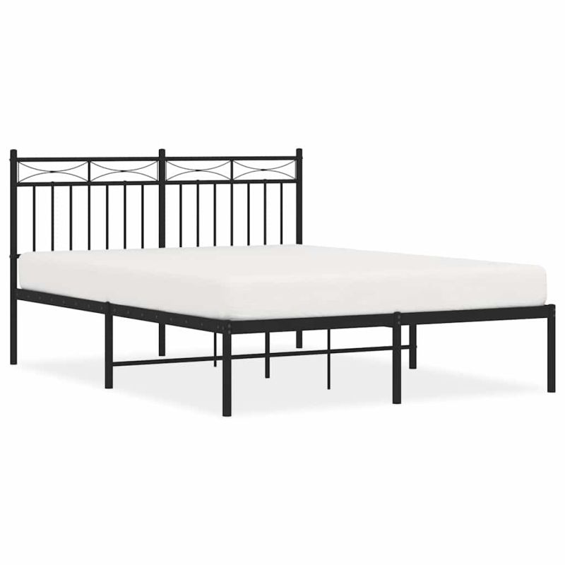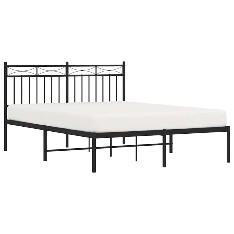 Метална рамка за легло с горна табла, черна, 135x190 см