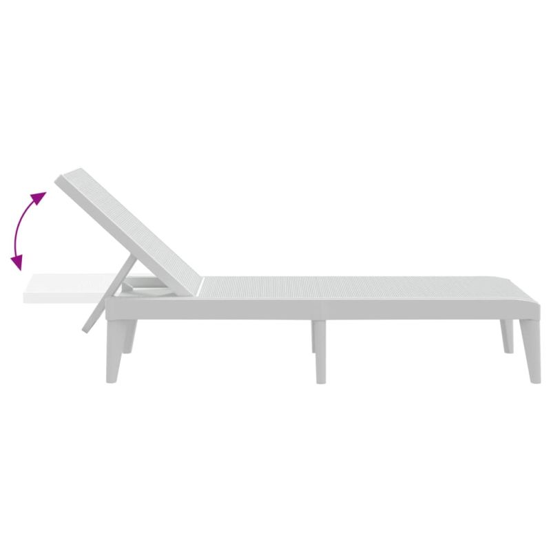 Шезлонг, бял, 186x60x29 см, PP