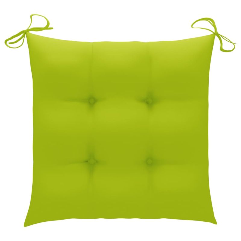 Градински столове с яркозелени възглавници 2 бр тик масив