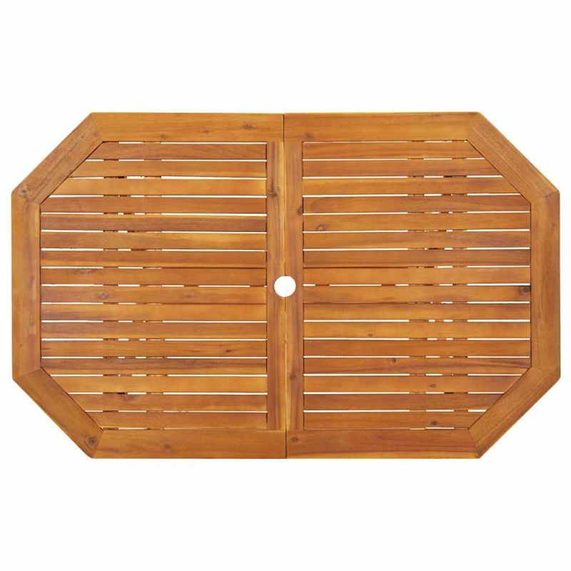 Създайте завладяваща и сплотена естетика във вашето външно пространство с този градински дървен трапезен комплект! Този градински трапезен комплект е изработен от масивна акациева дървесина – тропическа твърда дървесина, която е устойчива на атмосферни влияния и издръжлива за години на употреба. Повърхността с маслен финиш се почиства лесно с влажна кърпа. Освен това патио столовете и маса могат да бъдат сгънати до компактен размер, за да спестят място, когато не се използват. Забележка: За да удължите живота на вашите градински мебели, ви препоръчваме да ги защитите с водоустойчиво покритие.