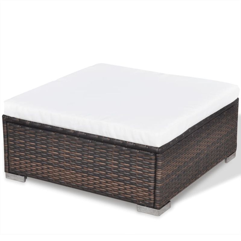 Този ратанов комплект мека мебел съчетава стил и функционалност и ще се превърне във фокусната точка на вашата градина или вътрешен двор. Целият комплект мебели е предназначен за целогодишно ползване на открито. Благодарение на устойчивия на атмосферни влияния и водоустойчив полиетиленов ратан, лаундж комплектът е лесен за почистване, износоустойчив и подходящ за ежедневна употреба. Модулният комплект разполага със здрава прахово боядисана стоманена рамка, която е много издръжлива. Той също така е лек и модулен, което го прави напълно функционален и лесен за преместване, за да се впише към всеки екстериор. Дебелите, подвижни възглавници са изключително комфортни. Доставката включва 2 ъглови модула, 1 централен модул, 1 табуретка, 1 маса за чай, 4 възглавници за седалките и 5 възглавници за облягане.
