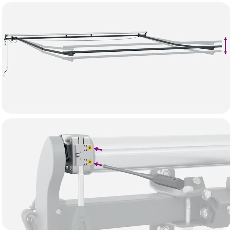 Създайте хубаво и прохладно място във вашия двор и се предпазете от ултравиолетовите лъчи с тази прибираща се тента! Издръжлив материал: Рамката на сенника е изработена от прахово боядисан алуминий, който е здрав и издръжлив. Тъканта с PU повърхностна обработка е UV устойчива. Тя ще предпази вашето семейство или гости от UV лъчи и ослепителна слънчева светлина.Автоматична функция: Можете лесно да отваряте и прибирате тентата чрез включеното дистанционно управление.Лесен за работа: Ъгълът и височината могат да се регулират, за да отговорят на вашите различни нужди. Можете да отваряте и прибирате тентата плавно с дългата манивела.LED светлини и сензор за вятър: Интегрираните LED светлини на тентата осветяват вашето външно жилищно пространство и създават уютна и романтична атмосфера, когато слънцето залезе. Тя също е снабдена със сензор за вятър, който може автоматично да затвори сенника ви през дните със силен вятър.Широки приложения: Прибиращата се тента се отличава с прост, стилен дизайн, който ще се слее добре с вашия дом или търговски обекти. Подходящ е за различни места, като тераси, вътрешни дворове, ресторанти, кафенета, магазини и др. Децата трябва да бъдат наблюдавани, за да се гарантира, че няма да си играят с уреда. Пазете децата далеч от зоната за сглобяване.Внимание: Прочетете внимателно инструкциите преди употреба и ги запазете за по-нататъшни справки.