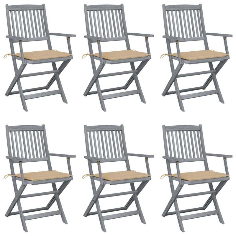 Сгъваеми градински столове, 6 бр, с възглавници, акация масив