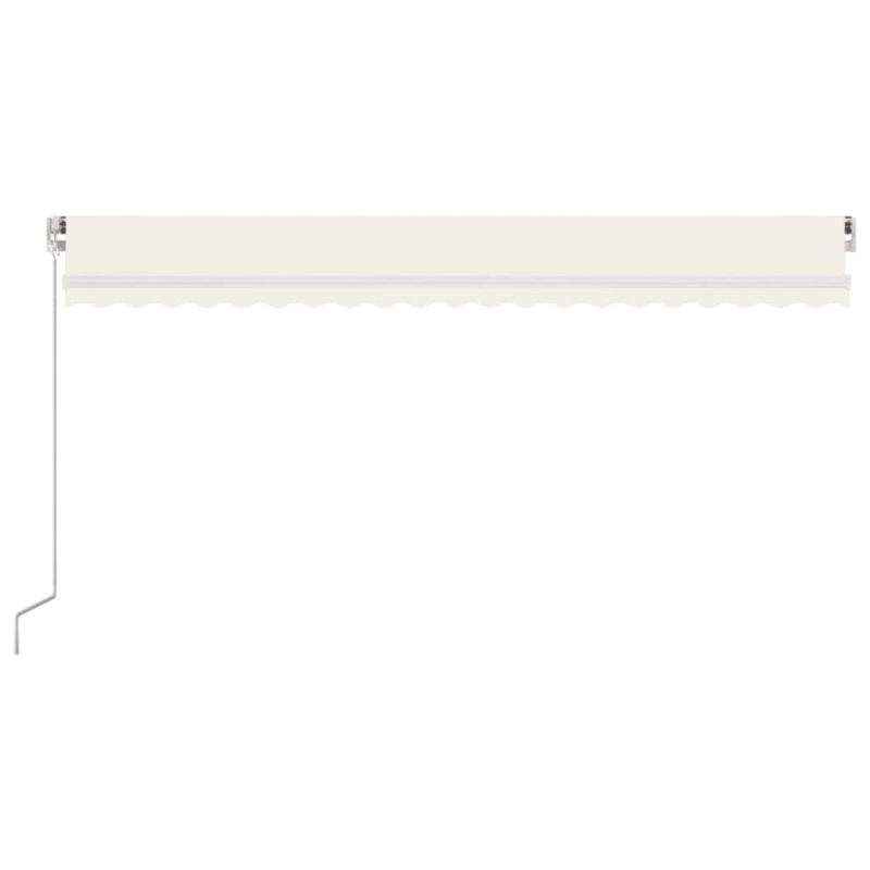 Ръчно прибиращ се сенник с LED, 500x350 см, кремав