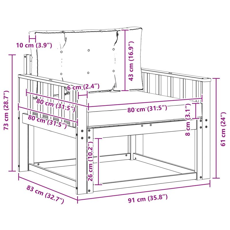 • 1 x Подложка за сядане: 80 x 80 x 8 см (ДхШхВ)