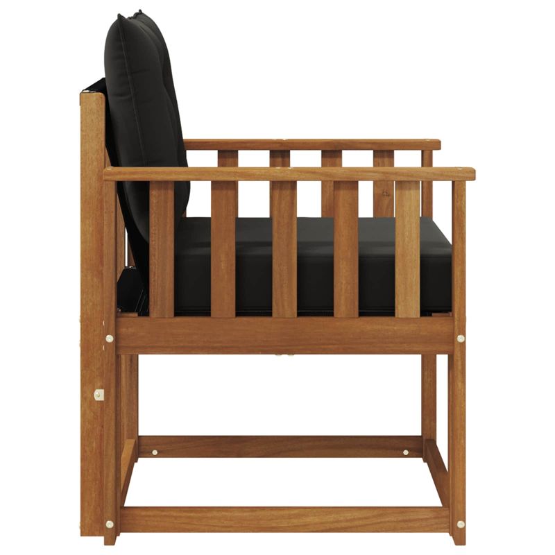 Този комплект мебели за външно ползване съчетава стил и удобство, придавайки елегантен вид на градината или терасата. Със своя модерен дизайн и минималистичен стил, той е идеален за отпочиване на открито и социални събирания. Направен е от масивна акациева дървесина, осигуряваща дълготрайност и приятно излъчване. Издръжлива масивна акациева дървесина: Този комплект е здрав и устойчив на външни условия, като предлага стабилна основа и добавя визуален чар на градината или терасата. Устойчиво на атмосферни условия проектиране: Лаковото покритие осигурява защита срещу слънце и малко дъжд, като помага за запазване на външния вид и функционалността. Компоненти и дизайн: Всеки детайл е проектиран както за стил, така и за комфорт. Съгласуваният дизайн изглежда визуално приятно на всяко открито събитие. Комфорт и универсалност: Модулната структура позволява различни конфигурации, удобни за всякакви поводи — от релаксиране до социални събирания. Лесна поддръжка: Просто почиствайте с влажна кърпа и избягвайте агресивни почистващи препарати, за да запазите мебелите в добро състояние.