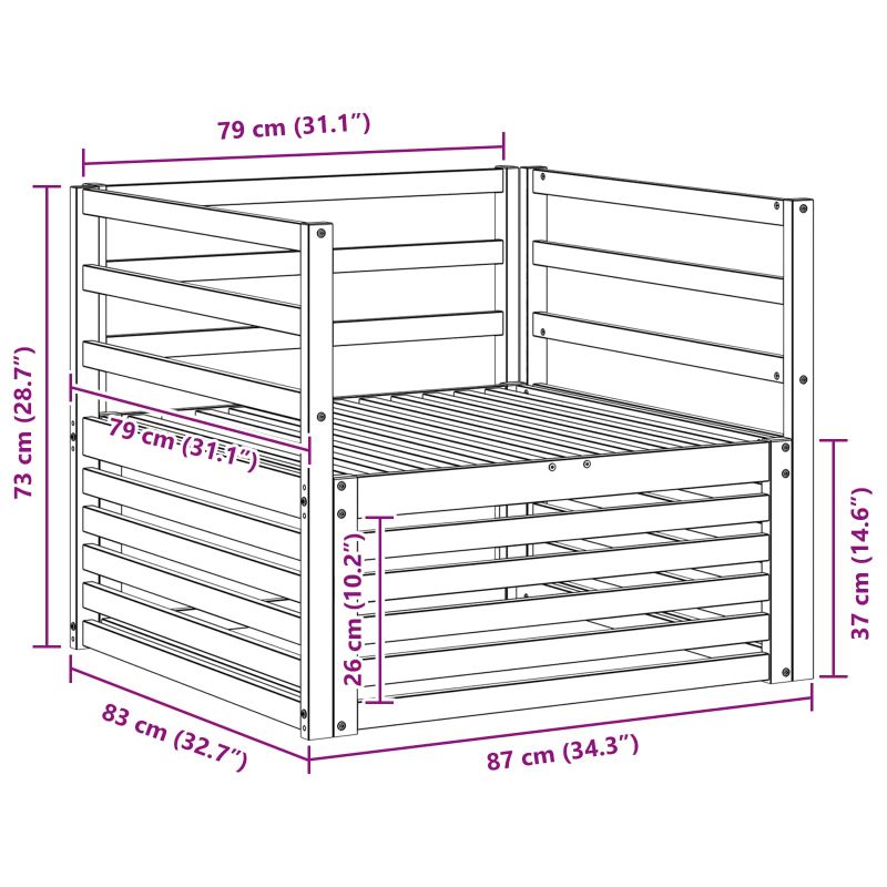• 1 x Среден диван: 79 x 83 x 73 см (ДxШxВ)