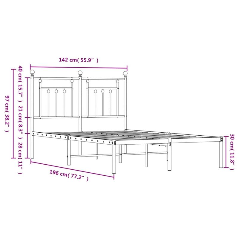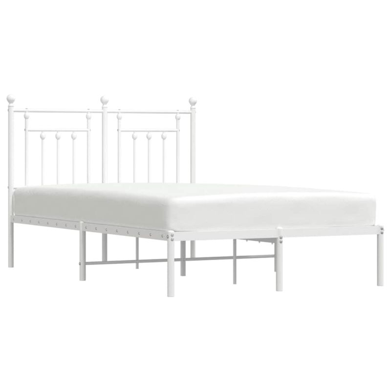 Метална рамка за легло с горна табла, бяла, 135x190 см