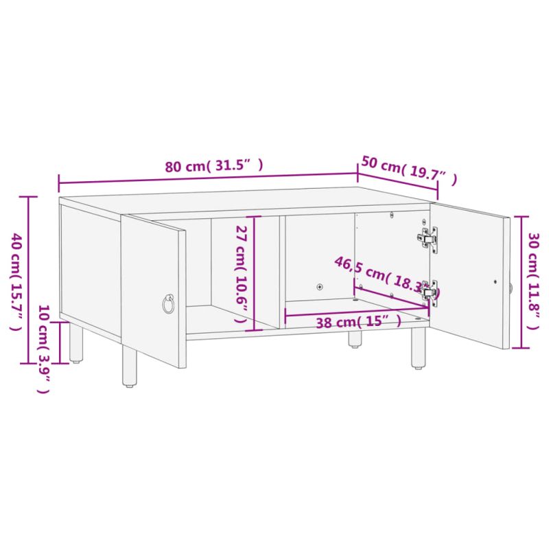 Кафе маса, 80x50x40 см, мангово дърво масив