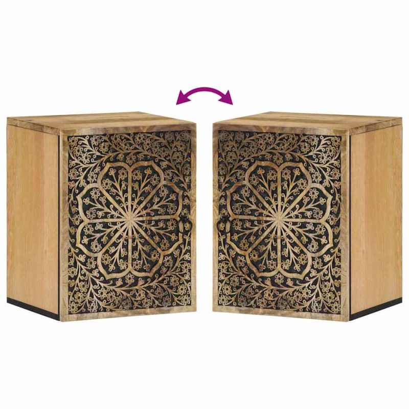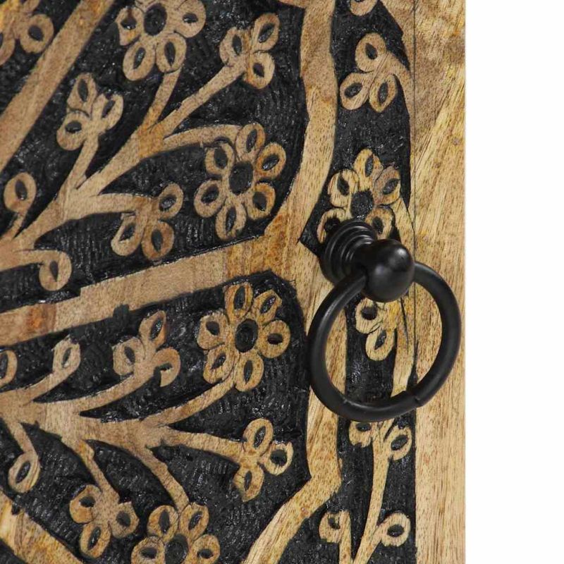 Този класически окачен стенен шкаф е предназначен да оптимизира пространството на стената ви и да украси дома ви! Масивна мангова дървесина: Масивната дървесина от манго е здрава тропическа дървесина, от която се произвеждат здрави мебели. Красивите ѝ дървесни шарки правят всяка мебел малко по-различна от следващите. Изработен от масивно мангово дърво, шкафът за баня е издръжлив и стабилен.Достатъчно място за съхранение: Този стенен шкаф предлага достатъчно място за съхранение, за да държите най-важните си вещи добре подредени и на една ръка разстояние.Функция за стенен монтаж: Този шкаф за съхранение може да се монтира на стена за допълнително място за съхранение. По този начин можете да увеличите максимално пространството на пода и да поддържате чистота.Гъвкава врата: Можете да инсталирате вратата или от лявата, или от дясната страна според собствените си нужди.Ретро стил: Този окачен шкаф с ръчно издълбани флорални мотиви внася лукса на ретро стила във вашия интериор, като е централната точка на вашата стая. Добре е да се знае:Всеки артикул е уникален с вариации в цветове и зърна. Доставката е на случаен принцип, което гарантира ексклузивността и индивидуалността на вашия продукт.
