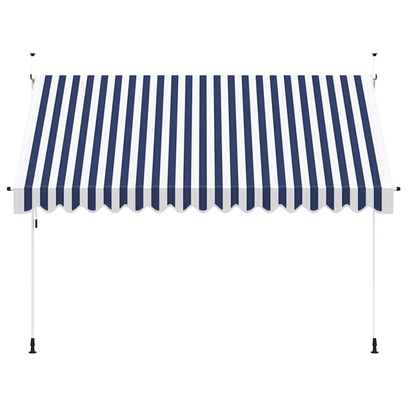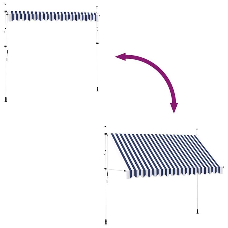 Ръчно прибиращ се сенник, 350 см, синьо-бели ивици