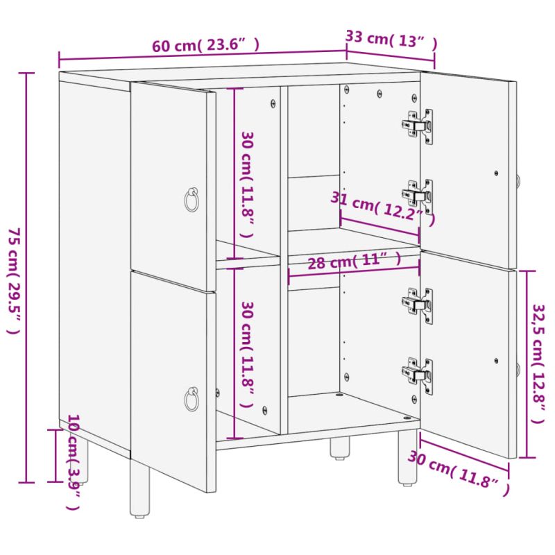 Страничен шкаф 60x33x75 см манго масивно дърво