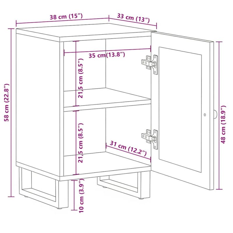 Този шкаф за баня, отличаващ се с просторно място за съхранение, ще бъде чудесно допълнение към вашата баня, придавайки ѝ подреден и красив вид! Здрав и стабилен материал: Масивното мангово дърво, здрава тропическа твърда дървесина, е силно предпочитано за производството на мебели поради изключителната си издръжливост и здравина. Красивите ѝ дървесни шарки правят всяка мебел малко по-различна от следващите.Метални крачета: Този шкаф се поддържа от здрави метални крачета, за да се гарантира стабилност, безопасност и устойчивост.Достатъчно място за съхранение: Тоба обзавеждане за баня предлага достатъчно място за съхранение, където да държите вашите принадлежности добре организирани и подръка.Практична врата: Вратата на шкафа за съхранение осигурява затворено пространство за съхранение, за да бъдат вещите ви подредени, защитени и да не се виждат. Внимание:За да предотвратите преобръщане, този продукт трябва да се използва с предоставеното устройство за закрепване на стена. Добре е да се знае:Всеки артикул е уникален с вариации в цветове и зърна. Доставката е на случаен принцип, което гарантира ексклузивността и индивидуалността на вашия продукт.