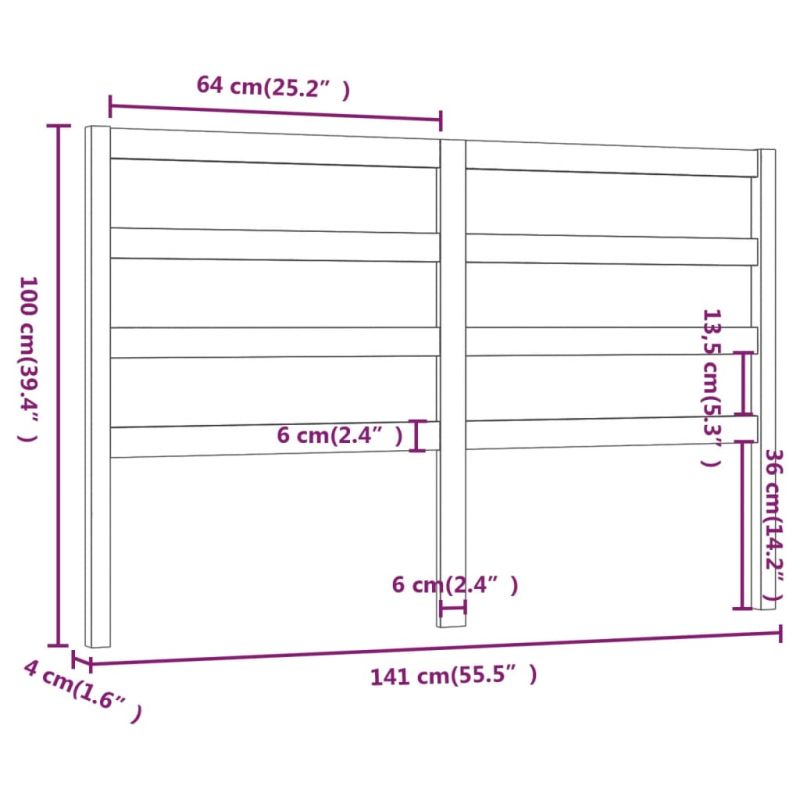 Горна табла за легло, 141x4x100 см, бор масив