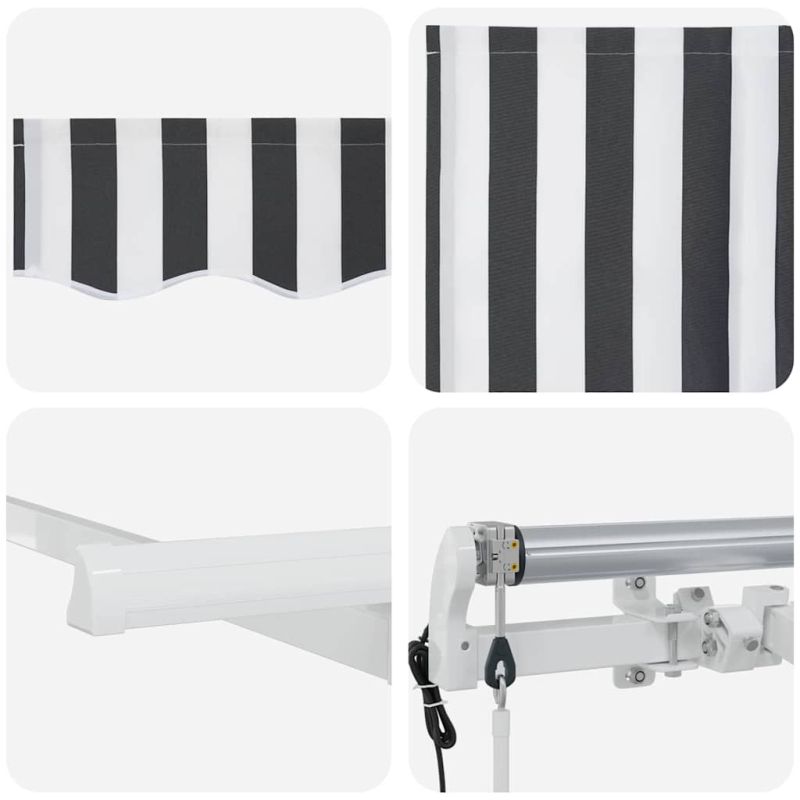 Този модерен сгъваем сенник е направен за открити пространства, предлагащ стил и практичност. Има елегантен и гладък дизайн с райета, който придава живописен вид, докато осигурява сянка от силното слънце през лятото. Европейски вдъхновен стил Стилен и модерен дизайн с чисти линии, който идеално се вписва в терасата или двора. Прибираемият му механизъм го прави перфектен за тези, които искат удобство и стил. Здрави материали Издръжлива тъкан, устойчива на UV лъчи и вода. Алуминиевата рамка е здрава и лека, правейки монтажа лесен. Гъвкава функционалност Може да се разтяга напълно или да се прибира, за да спестява пространство. Тази функция е супер удобна, когато искате да контролирате количеството слънчева светлина. Лесна поддръжка Само бързо избърсване с мокра кърпа е нужно, за да остане в отлично състояние. Проектиран е да устои на времето, осигурявайки дълготрайност с минимални усилия. Адаптивен в различни настройки Подходящ е за градини, тераси или около басейн. Осигурява сянка, идеална за летни партита или релаксиращи кътчета навън. Опасност! Силен отскок при отваряне. НЕ сваляйте това въже, освен ако не сте приключили с всички стъпки на сглобяване. Всички болтове трябва да са затегнати и елементът да е прикрепен към стената! Предупреждение! Внимавайте, когато разхлабвате рамената, защото те са под напрежение! Внезапното освобождаване на рамо на сгъваема тента може да причини нараняване. Внимание: Инструкциите за ползване трябва да бъдат прочетени преди употребата на продукта. Предупреждение: Работата в студени условия може да повреди продукта. Външна употреба в сгради и други строителни обекти. Не позволявайте на деца да си играят с управляващото устройство на щората. Дръжте дистанционното управление далеч от деца.