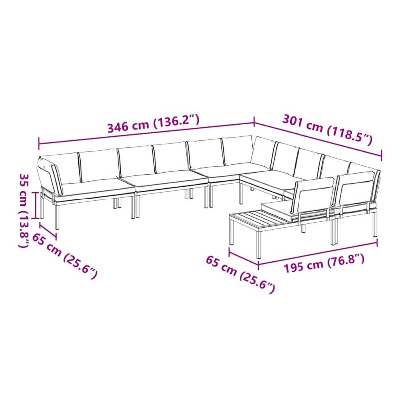Този градински диван е идеалното допълнение към вашия заден двор, тераса или вътрешен двор, осигурявайки удобно и привлекателно пространство за разговори със семейството и приятелите или просто за почивка и забавление на открито. Дълготрайни и здрави: Комплектът дивани за открито е с алуминиева конструкция, което го прави издръжлив и дълготраен.Удобна странична масичка: Тази външна мебел разполага със странична масичка, осигуряваща удобно място, където да държите най-важните неща леснодостъпни.Удобна седалка: Тази мебел за открито, снабдена с плътно подплатени възглавници, предлага удобство при сядане. Калъф, който може да се сваля и може да се пере: Тези възглавници за седалки имат подвижни калъфи за лесно пране и поддръжка.Модулен дизайн: Този комплект външни мебели има модулен дизайн, което го прави напълно гъвкав и лесен за преместване, така че можете да създадете персонализирана подредба на външни мебели. Добре е да се знае:За да сте сигурни, че вашите външни мебели ще останат красиви, ви препоръчваме да ги защитите с водоустойчиво покривало. Максимално 110 кг на седалка. Съобразете се с риска от открит огън и други източници на силна топлина в близост до продукта.