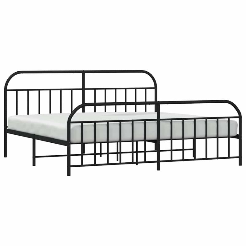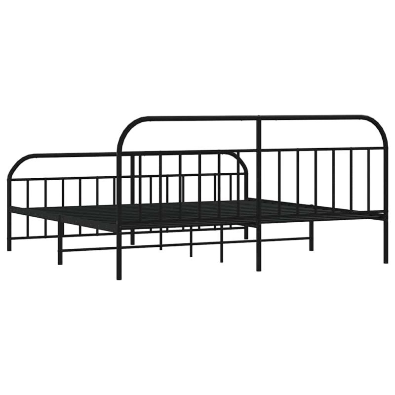 Метална рамка за легло с горна и долна табла, черна, 200x200 см