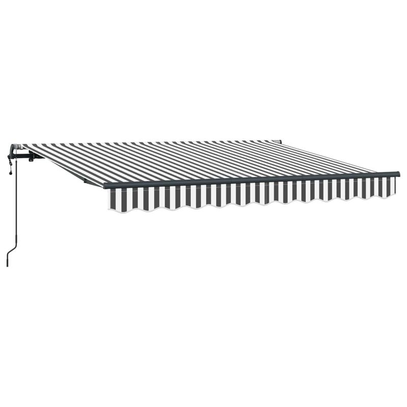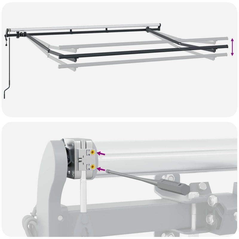 Този модерен сгъваем сенник е направен за открити пространства, предлагащ стил и практичност. Има елегантен и гладък дизайн с райета, който придава живописен вид, докато осигурява сянка от силното слънце през лятото. Европейски вдъхновен стил Стилен и модерен дизайн с чисти линии, който идеално се вписва в терасата или двора. Прибираемият му механизъм го прави перфектен за тези, които искат удобство и стил. Здрави материали Издръжлива тъкан, устойчива на UV лъчи и вода. Алуминиевата рамка е здрава и лека, правейки монтажа лесен. Гъвкава функционалност Може да се разтяга напълно или да се прибира, за да спестява пространство. Тази функция е супер удобна, когато искате да контролирате количеството слънчева светлина. Лесна поддръжка Само бързо избърсване с мокра кърпа е нужно, за да остане в отлично състояние. Проектиран е да устои на времето, осигурявайки дълготрайност с минимални усилия. Адаптивен в различни настройки Подходящ е за градини, тераси или около басейн. Осигурява сянка, идеална за летни партита или релаксиращи кътчета навън. Опасност! Силен отскок при отваряне. НЕ сваляйте това въже, освен ако не сте приключили с всички стъпки на сглобяване. Всички болтове трябва да са затегнати и елементът да е прикрепен към стената! Предупреждение! Внимавайте, когато разхлабвате рамената, защото те са под напрежение! Внезапното освобождаване на рамо на сгъваема тента може да причини нараняване. Внимание: Инструкциите за ползване трябва да бъдат прочетени преди употребата на продукта. Предупреждение: Работата в студени условия може да повреди продукта. Външна употреба в сгради и други строителни обекти. Не позволявайте на деца да си играят с управляващото устройство на щората. Дръжте дистанционното управление далеч от деца.