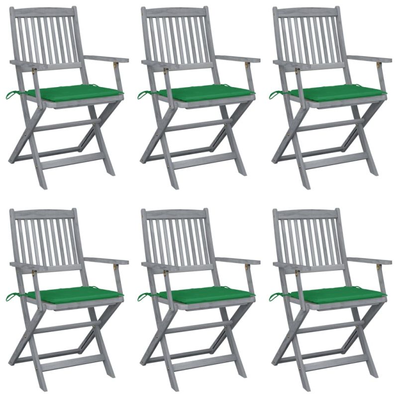 Сгъваеми градински столове, 6 бр, с възглавници, акация масив