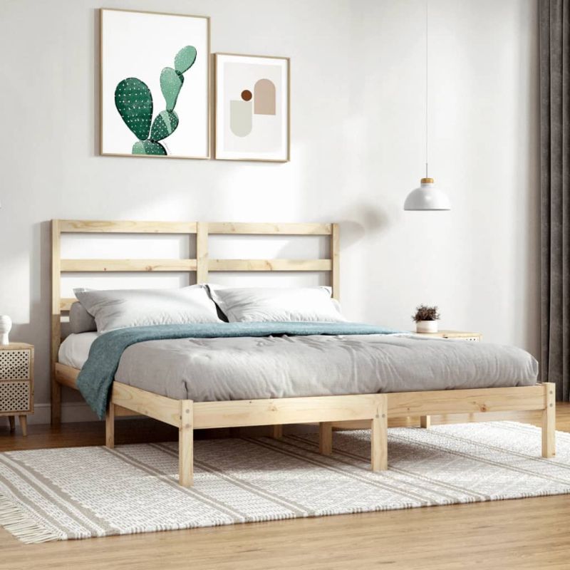 Модернизирайте вашата спалня с тази дървена рамка за легло! Тя ще се превърне в практично и декоративно допълнение към вашия интериор. Първокласен материал: Масивната борова дървесина е красив естествен материал. Боровата дървесина има прави шарки, а възлите придават на материала характерния му рустик вид.Здрави ламели: Ламелите от шперплат осигуряват добро разпределение на теглото, като гарантират, че матракът остава на място при всяко завъртане на тялото ви по време на сън.Удобна табла за глава: Класическата табла ви позволява да си починете удобно, докато четете или гледате филм. Забележка:Доставката включва само рамка за легло. Матракът не е включен. Можете да проверите в нашия магазин за подходящи матраци.Тази рамка за легло е подходяща за матрак с размери 135 x 190 см (4FT6 двойна).