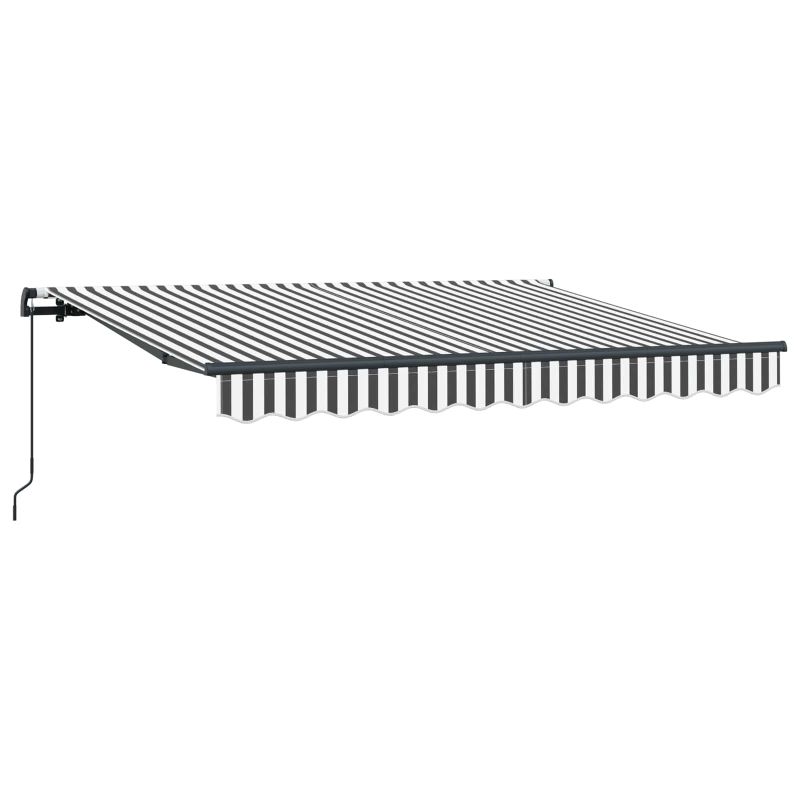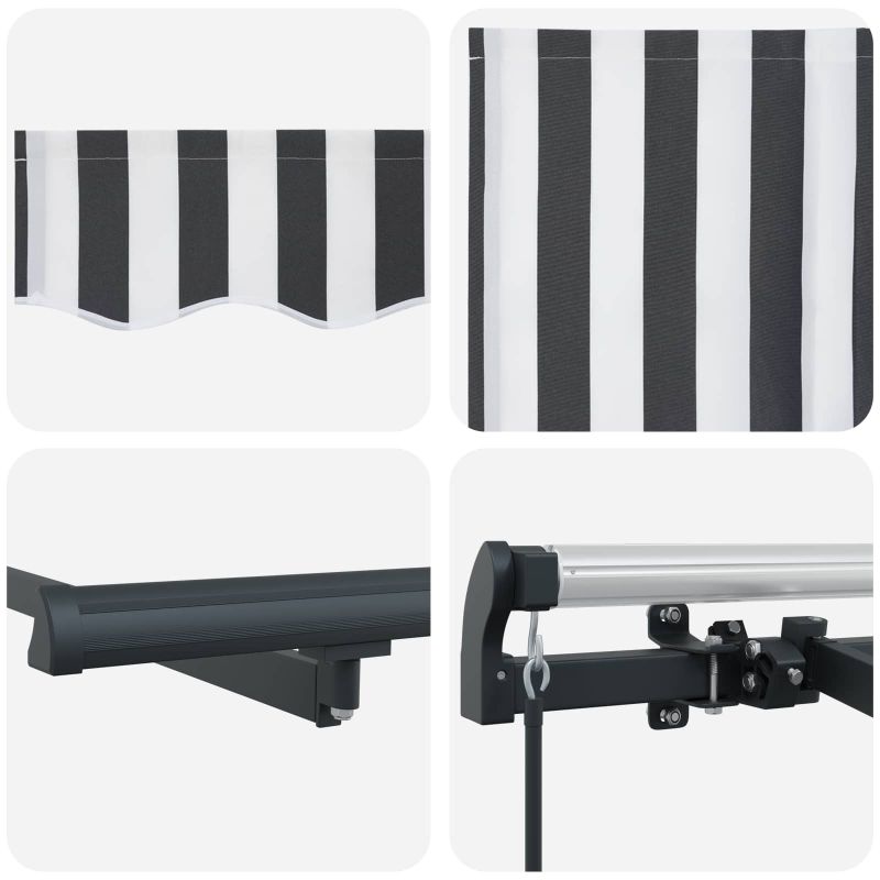 Този модерен сгъваем сенник е направен за открити пространства, предлагащ стил и практичност. Има елегантен и гладък дизайн с райета, който придава живописен вид, докато осигурява сянка от силното слънце през лятото. Европейски вдъхновен стил Стилен и модерен дизайн с чисти линии, който идеално се вписва в терасата или двора. Прибираемият му механизъм го прави перфектен за тези, които искат удобство и стил. Здрави материали Издръжлива тъкан, устойчива на UV лъчи и вода. Алуминиевата рамка е здрава и лека, правейки монтажа лесен. Гъвкава функционалност Може да се разтяга напълно или да се прибира, за да спестява пространство. Тази функция е супер удобна, когато искате да контролирате количеството слънчева светлина. Лесна поддръжка Само бързо избърсване с мокра кърпа е нужно, за да остане в отлично състояние. Проектиран е да устои на времето, осигурявайки дълготрайност с минимални усилия. Адаптивен в различни настройки Подходящ е за градини, тераси или около басейн. Осигурява сянка, идеална за летни партита или релаксиращи кътчета навън. Опасност! Силен отскок при отваряне. НЕ сваляйте това въже, освен ако не сте приключили с всички стъпки на сглобяване. Всички болтове трябва да са затегнати и елементът да е прикрепен към стената! Предупреждение! Внимавайте, когато разхлабвате рамената, защото те са под напрежение! Внезапното освобождаване на рамо на сгъваема тента може да причини нараняване. Внимание: Инструкциите за ползване трябва да бъдат прочетени преди употребата на продукта. Предупреждение: Работата в студени условия може да повреди продукта. Външна употреба в сгради и други строителни обекти.