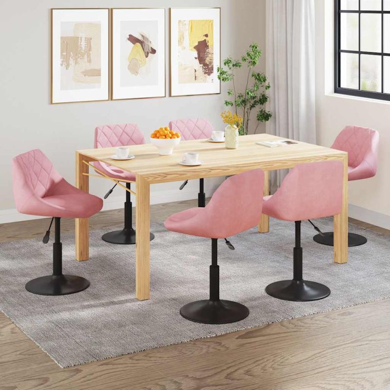 Въртящи се трапезни столове, 6 бр, розови, кадифе
