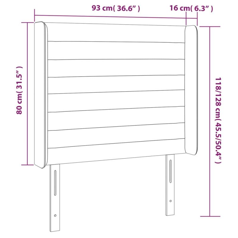 LED горна табла за легло, черна, 93x16x118/128 см, кадифе