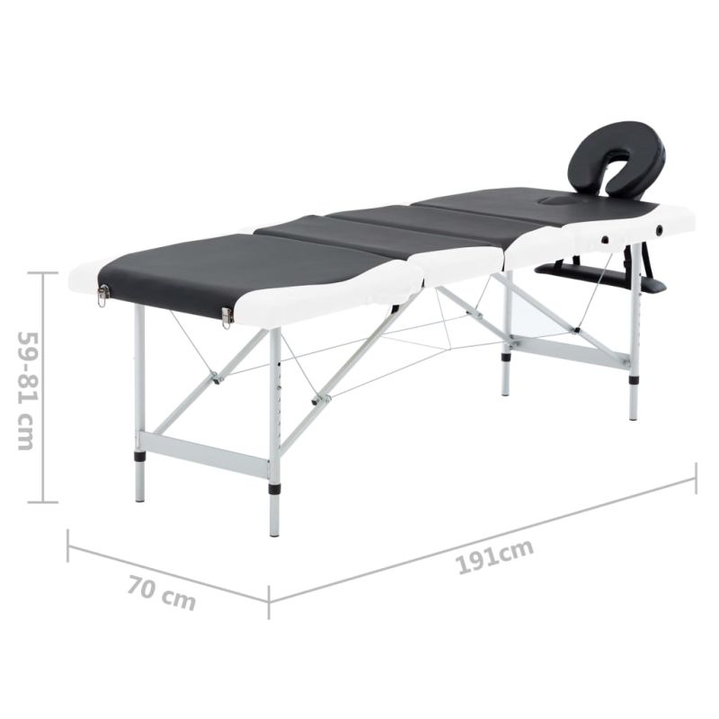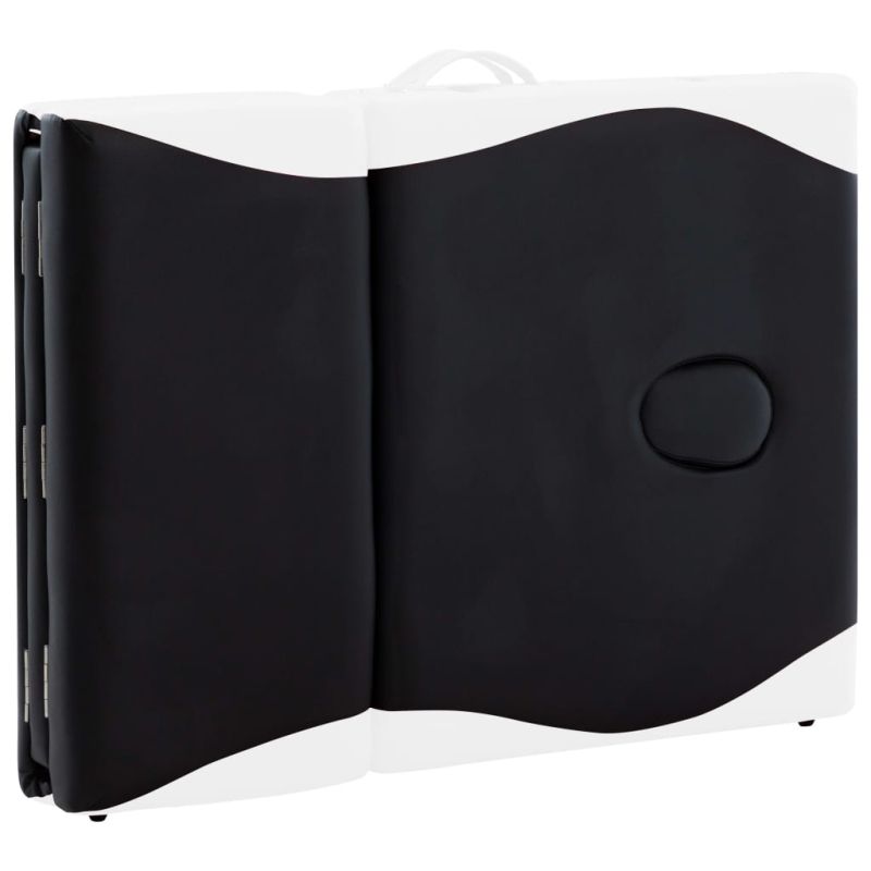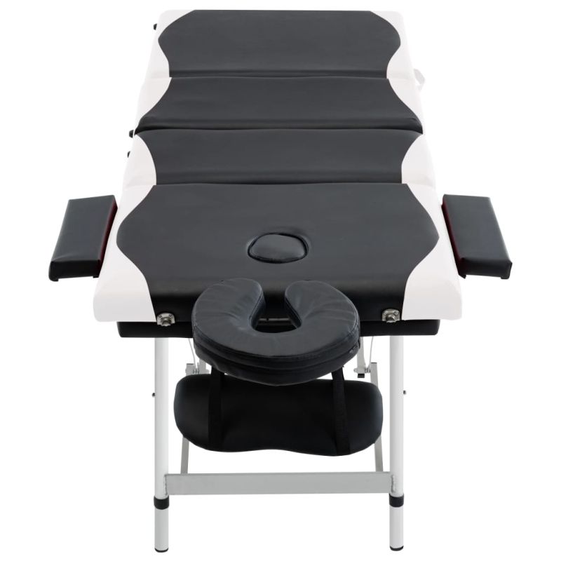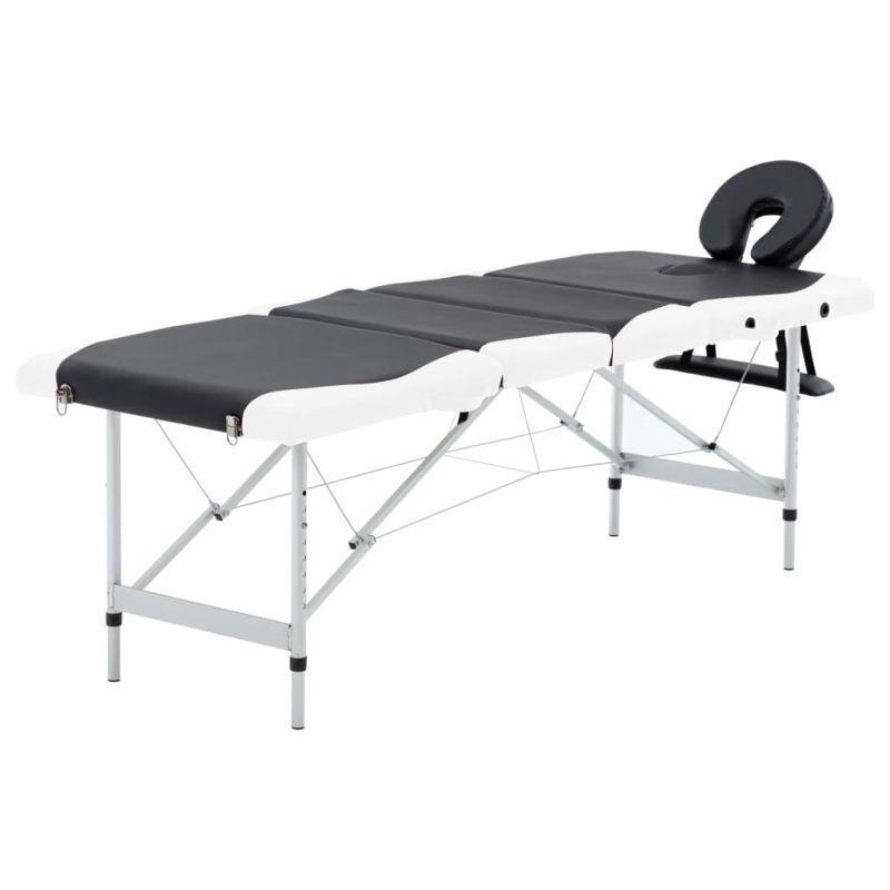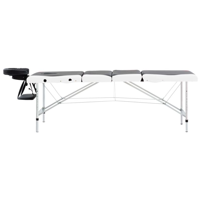 4-зонова сгъваема масажна кушетка, алуминий, черно и бяло