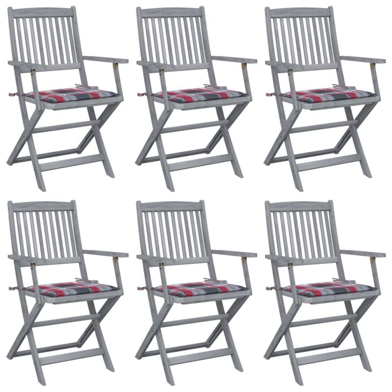 Сгъваеми градински столове, 6 бр, с възглавници, акация масив