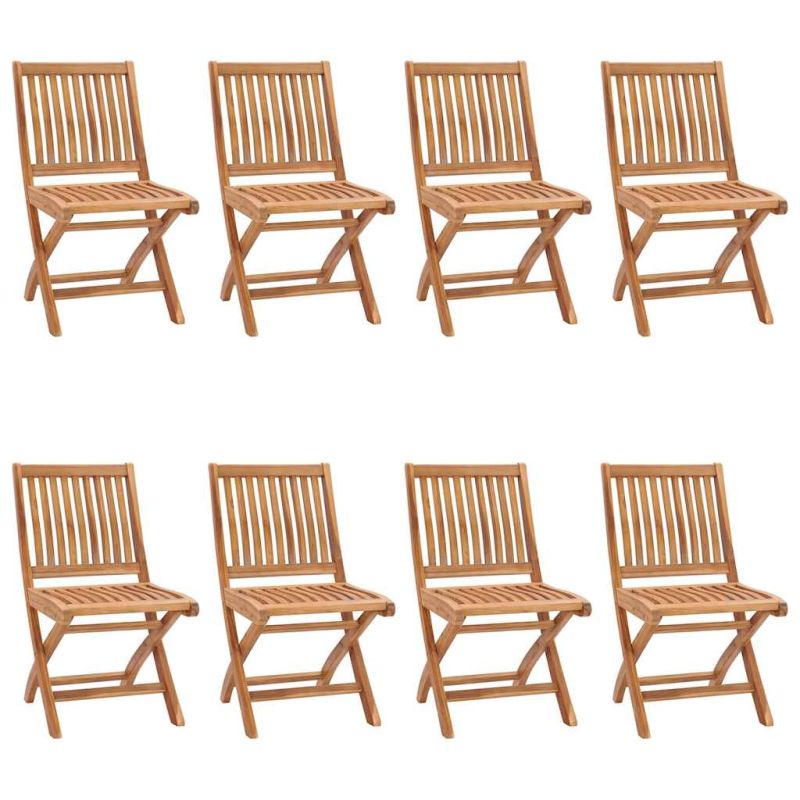 Сгъваеми градински столове с възглавници, 8 бр, тик масив