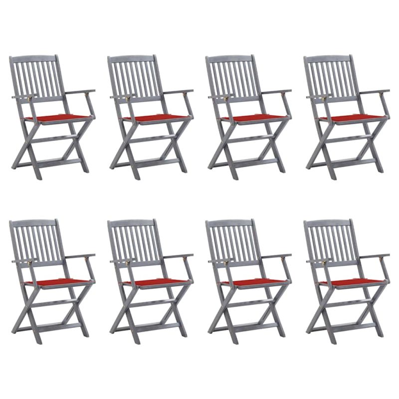 Сгъваеми градински столове, 8 бр, с възглавници, акация масив