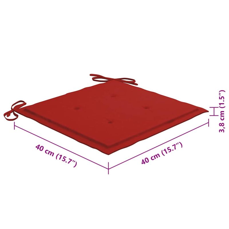 Този модерен комплект дървени трапезни столове с възглавници ще добави щрих на естествен стил към градината, терасата или вътрешния двор. Този комплект сгъваеми столове ще бъде чудесен избор за вечеря. Трапезните столове са изработени от масивно акациево дърво – тропическа твърда дървесина, която ги прави устойчиви на атмосферни влияния и издръжливи за дългогодишна употреба. Масивната акациева дървесина има силата да понесе тежестта и да издържи на износването на времето. Сивата избелена повърхност се почиства лесно с влажна кърпа. Столовете могат да се сгъват, за да пестят място, когато не се използват. Освен това включените възглавници осигуряват допълнителен комфорт при почивка или хранене. Всяка възглавница разполага с два комплекта връзки за плътно закрепване към стола. Забележка: За да удължите живота на вашите градински мебели, препоръчваме ви да ги почиствате редовно и да не ги оставяте ненужно на открито без защита.Почистване: Използвайте мек сапунен разтворСъхранение: Ако е възможно, съхранявайте на хладно и сухо място на закрито. Ако продуктът се съхранява на открито, защитете го с водоустойчиво покривало. Избършете и изсушете излишната вода или сняг от плоските повърхности след дъжд или снеговалеж. Осигурете достатъчно циркулация на въздух, за да избегнете повреди, свързани с влагата. Максимално 110 кг на седалка.