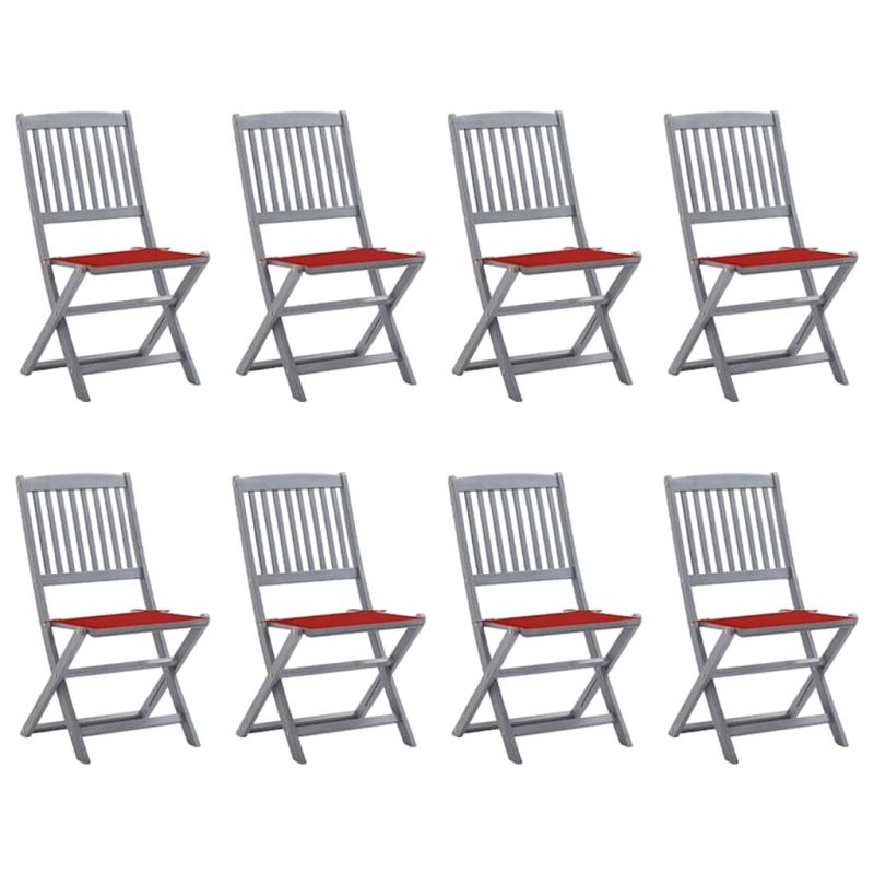 Сгъваеми градински столове, 8 бр, с възглавници, акация масив