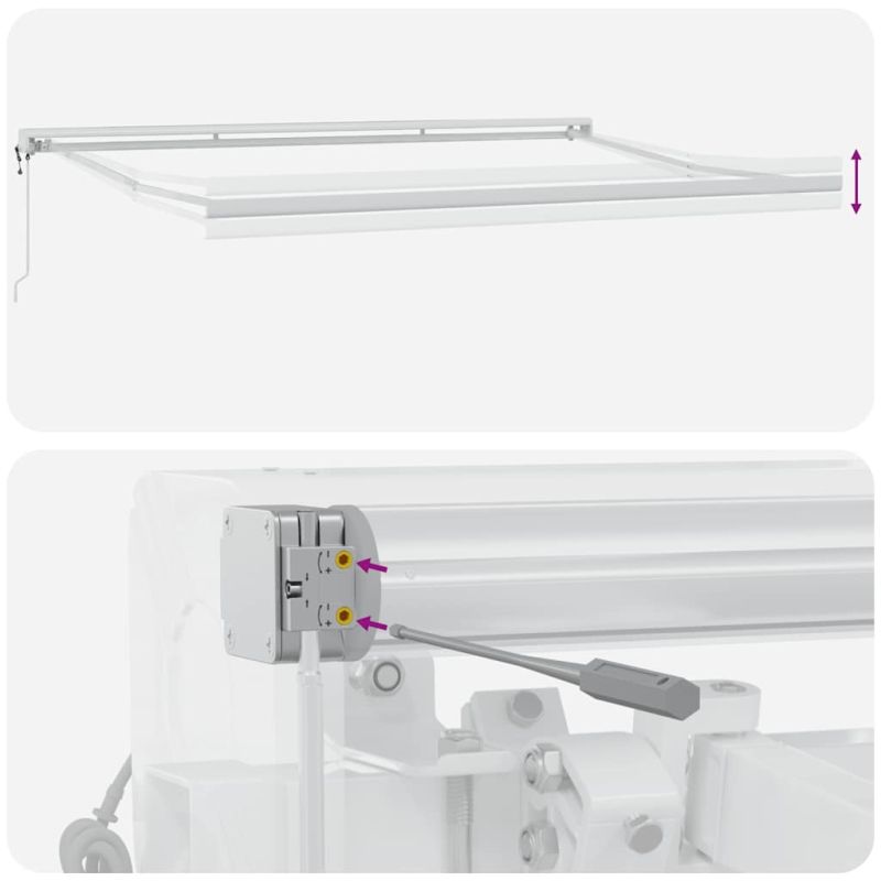 Създайте хубаво и прохладно място във вашия двор и се предпазете от ултравиолетовите лъчи с тази прибираща се тента! Издръжлив материал: Рамката на сенника е изработена от прахово боядисан алуминий, който е здрав и издръжлив. Тъканта с PU повърхностна обработка е UV устойчива. Тя ще предпази вашето семейство или гости от UV лъчи и ослепителна слънчева светлина.Автоматична функция: Можете лесно да отваряте и прибирате тентата чрез включеното дистанционно управление.Лесен за работа: Ъгълът и височината могат да се регулират, за да отговорят на вашите различни нужди. Можете да отваряте и прибирате тентата плавно с дългата манивела.Широки приложения: Прибиращата се тента се отличава с прост, стилен дизайн, който ще се слее добре с вашия дом или търговски обекти. Подходящ е за различни места, като тераси, вътрешни дворове, ресторанти, кафенета, магазини и др. Този уред може да се използва от деца на възраст от 8 години и нагоре, както и от лица с намалени физически, сетивни или умствени способности или с липса на опит и познания, ако са получили надзор или инструкции относно използването на уреда по безопасен начин и разбират свързаните с него опасности. Децата не трябва да си играят с уреда. Децата не трябва да извършват почистване и поддръжка без надзор. Ако захранващият кабел е повреден, той трябва да бъде заменен от производителя, неговия сервизен представител или от лица с подобна квалификация, за да се избегне опасност. ПРЕДУПРЕЖДЕНИЕ: Важни инструкции за безопасност. За безопасността на хората е важно да се спазват тези инструкции. Запазете тези инструкции. ПРЕДУПРЕЖДЕНИЕ: Важни инструкции за безопасност. Спазвайте всички инструкции, тъй като неправилният монтаж може да доведе до тежки наранявания или дори смърт. Не позволявайте на деца да си играят с устройството за управление. Дръжте дистанционното управление далеч от деца. Не работете с тентата, когато в близост се извършва поддръжка, например почистване на прозорци. Движещите се части на задвижването трябва да бъдат монтирани на височина повече от 2,5 м над пода или друго ниво, което може да осигури достъп до тях. Преди да монтирате задвижването, отстранете всички ненужни кабели и изключете всяко оборудване, което не е необходимо за работа със захранване. Задвижващият елемент на превключвателя с предразположение трябва да бъде разположен в пряка видимост към задвижваната част, но далеч от движещи се части. Той трябва да се монтира на минимална височина от 1,5 m.Опасност! Силен отскок при отваряне. НЕ сваляйте това въже, освен ако не сте приключили с всички стъпки на сглобяване. Всички болтове трябва да са затегнати и елементът да е прикрепен към стената! Предупреждение! Внимавайте, когато разхлабвате рамената, защото те са под напрежение! Внезапното освобождаване на рамо на сгъваема тента може да причини нараняване. Внимание: Инструкциите за ползване трябва да бъдат прочетени преди употребата на продукта. Предупреждение: Работата в студени условия може да повреди продукта. Външна употреба в сгради и други строителни обекти. Опасните незащитени движещи се части на мотора трябва да бъдат монтирани на повече от 2,5 м височина над пода или други нива, които биха могли да улеснят достъпа до него. GPSR