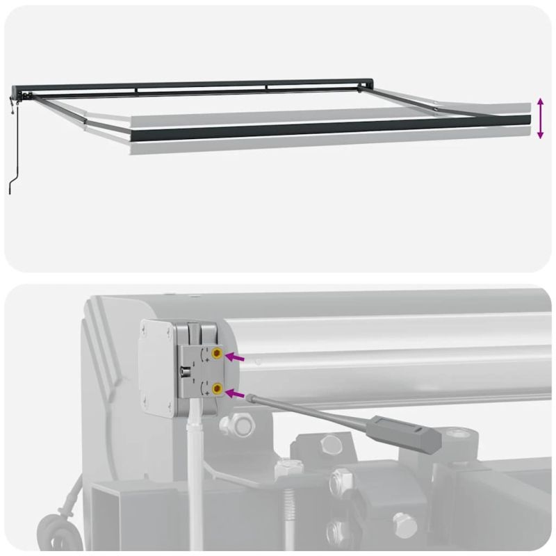 Създайте хубаво и прохладно място във вашия двор и се предпазете от ултравиолетовите лъчи с тази прибираща се тента! Издръжлив материал: Рамката на сенника е изработена от прахово боядисан алуминий, който е здрав и издръжлив. Тъканта с PU повърхностна обработка е UV устойчива. Тя ще предпази вашето семейство или гости от UV лъчи и ослепителна слънчева светлина.Автоматична функция: Можете лесно да отваряте и прибирате тентата чрез включеното дистанционно управление.Лесен за работа: Ъгълът и височината могат да се регулират, за да отговорят на вашите различни нужди. Можете да отваряте и прибирате тентата плавно с дългата манивела.Широки приложения: Прибиращата се тента се отличава с прост, стилен дизайн, който ще се слее добре с вашия дом или търговски обекти. Подходящ е за различни места, като тераси, вътрешни дворове, ресторанти, кафенета, магазини и др. Децата трябва да бъдат наблюдавани, за да се гарантира, че не си играят с уреда. Дръжте децата далеч от зоната на монтажа. Внимание: Прочетете внимателно инструкциите, преди употреба, и ги запазете за бъдещи справки.