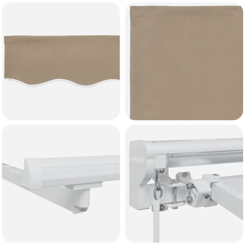 Този прибираем сенник е чудесен за градини и тераси. Може лесно да се разширява или прибира, за да регулира слънчевата светлина и защитата, когато е нужно. Идеален е за хапване на открито, релаксация или просто за посрещане на гости, създава комфортна среда, като предлага защита от слънце и леки дъждове. Сенникът е супер полезно допълнение, за да се наслаждаваш на откритите пространства през цялата година. Устойчиви материали: Изработен е от полиестер с PU покритие, който издържа на всякакво време. Рамката, прахово боядисана от стомана и алуминий, осигурява стабилност за ежедневно ползване навън. Регулируема работа: Сенникът може да се контролира с ръчна ръкохватка или дистанционно, позволявайки лесно разширение или прибиране в зависимост от нуждата от сянка. Структура полу-касета: С прибиращи се рамене и алуминиев вал, който предлага гладко разширение и прибиране, и защитава плата, когато не се използва. Открита сянка: Подходящ е за дворове, градини и тераси, прибираемата функция позволява регулиране на зоната сянка според условията на слънчевата светлина. Изисквания за монтаж: Сенникът е проектиран за монтаж на стена. Нужни са основни инструменти като отвертка, бормашина и клещи. Следвай инструкциите за правилно сглобяване и монтаж. Опасност! Силен отскок при отваряне. НЕ сваляйте това въже, освен ако не сте приключили с всички стъпки на сглобяване. Всички болтове трябва да са затегнати и елементът да е прикрепен към стената! Предупреждение! Внимавайте, когато разхлабвате рамената, защото те са под напрежение! Внезапното освобождаване на рамо на сгъваема тента може да причини нараняване. Внимание: Инструкциите за ползване трябва да бъдат прочетени преди употребата на продукта. Предупреждение: Работата в студени условия може да повреди продукта. Външна употреба в сгради и други строителни обекти.