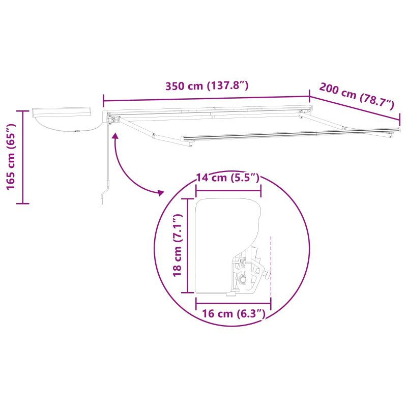 Начало Дом и градина Двор и градина Живот на открито Навеси за врати и прозорци Електрически разтегателен навес Кафяво и антрацит 3,5 x 2 m