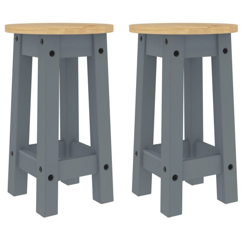 Бар табуретки, 2 бр, сиви, борово дърво масив