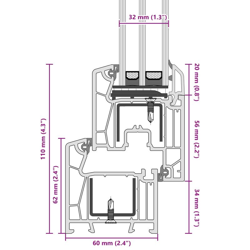 • Рамката има дълбочина 60 мм и 5-камерна система