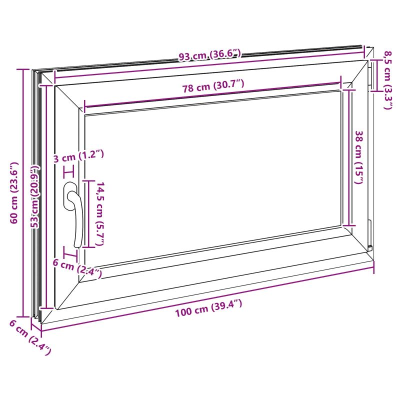 Този прозорец за мазета комбинира стилен и минималистичен дизайн с максимално удобство. Изработен от PVC и стъкло, той естествено се вписва в интериора на вашето мазе, увеличавайки светлината и добавяйки модерен акцент. Чистите линии го правят идеален за всяко мазе, като предлагат както красота, така и практичност. Висококачествени материали: Този прозорец е изработен от PVC и стъкло, което му придава модерен вид и дълготрайност. Рамката от PVC е здрава и гладка, която позволява на естествената светлина да озарява дома ви, създавайки приятно и свежо усещане. Лесен за употреба: Разполага с ръчен механизъм, който позволява наклон и завъртане, за да контролирате въздушния поток и светлината. Слесният му дизайн добавя удобство, позволявайки лесна настройка за комфорт и стил. Модерен дизайн: Този прозорец подобрява интериора на мазето, като е практичен и стилен. Чистото стъкло и минималистичният профил придават на вашето пространство изискан вид, който отлично се съчетава с модерни стилове. Перфектен за мазета: Проектиран така, че да добавя светлина и свежест в дома ви. Адаптивният му дизайн е подходящ за различни конфигурации, което го прави идеален за ежедневна употреба. Лесна поддръжка: Поддържането му е супер просто - само с влажна кърпа можете да премахнете праха и да запазите красивия му вид. Лесният за поддръжка дизайн ви позволява да се насладите на светло и приятно мазе без излишни усилия.
