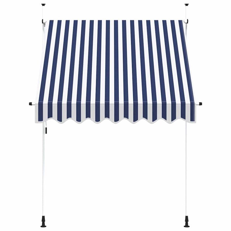 Ръчно прибиращ се сенник, 200 см, синьо-бели ивици