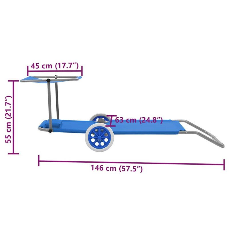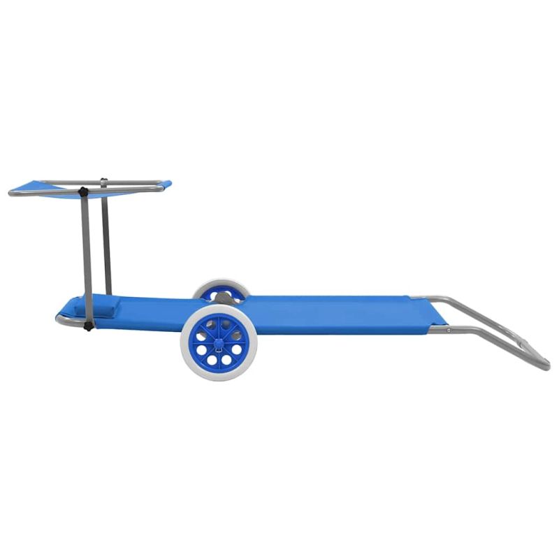 Начало Дом и градина Мебели Външни мебели Външно обзавеждане Шезлонги Сгъваем шезлонг с козирка и колелца, стомана, син