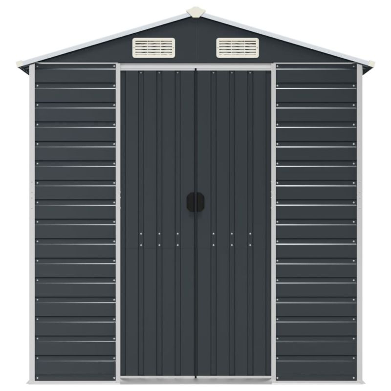 Разширете възможностите си за съхранение на открито и защитете инструментите си с този многофункционален градински навес. Здрав материал: Градинският навес за инструменти е изработен от поцинкована стомана, която предотвратява ръжда и е издръжлива на дълготрайна употреба. Стоманата е изключително твърд и здрав материал. Тя предлага здравина и стабилност. Поцинковането осигурява по-добра защита срещу корозия и е полезно за продукти, които ще се използват на открито, както и в тежки условия.Достатъчно място за съхранение: Този метален навес осигурява достатъчно място за съхранение на дърва за огрев, градински инструменти, мебели, оборудване и други.Удобни дръжки: Навесът за съхранение разполага с дръжки на вратата за лесно влизане.Добра вентилация: Външният навес е оборудван с 4 вентилационни отвора, осигуряващи вентилация за намаляване на натрупването на влага и миризми в къщата.Наклонен дизайн: Наклоненият покрив осигурява безпрепятствено оттичане на водата.Полезно е да знаете:За да предотвратите повреди от обилно натрупване на сняг, препоръчваме редовно почистване на покрива през зимата.