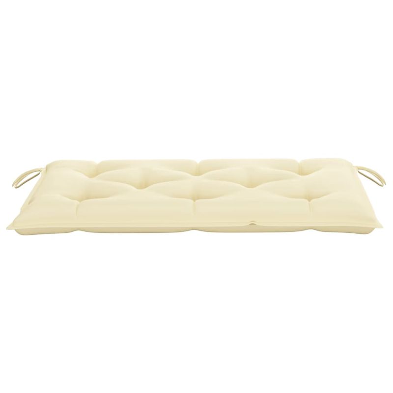 Градинска пейка с кремава възглавница, 112 см, тик масив