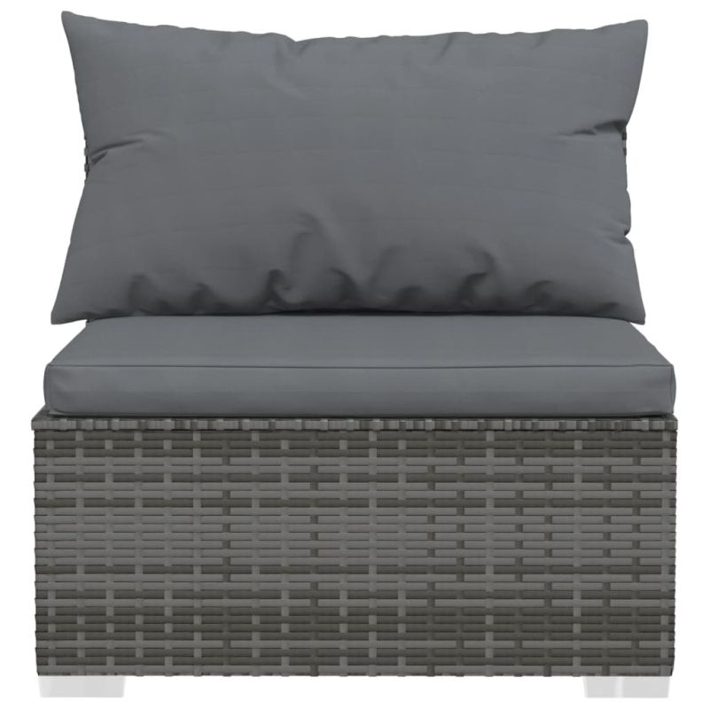 Насладете се на релаксиращо време с този модерен градински лаундж комплект! Той може да отговори на различни нужди. Здрава рамка: Този лаундж комплект за вътрешен двор се отличава със здрава прахово боядисана стоманена рамка и пластмасови хромирани крачета и е много издръжлив.Първокласен материал: Градинският комплект мека мебел е проектиран от водоустойчив PE ратан, което го прави лесен за почистване, издръжлив и подходящ за ежедневна употреба на открито.Модулен дизайн: Модулният дизайн дава възможност да поставите комплекта във всякаква аранжировка или да го комбинирате с други модулни сегменти, за да отговори на вашите нужди!Допълнителен комфорт при седене: Дебело подплатените и подвижни възглавници осигуряват оптимален комфорт за вашето седене на открито. Забележка:Забележка: За да удължите живота на вашите градински мебели, ви препоръчваме да ги защитите с водоустойчиво покривало.