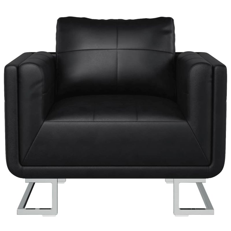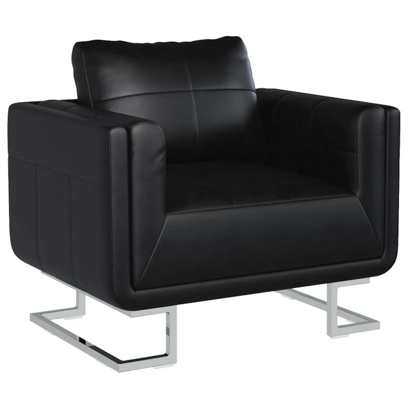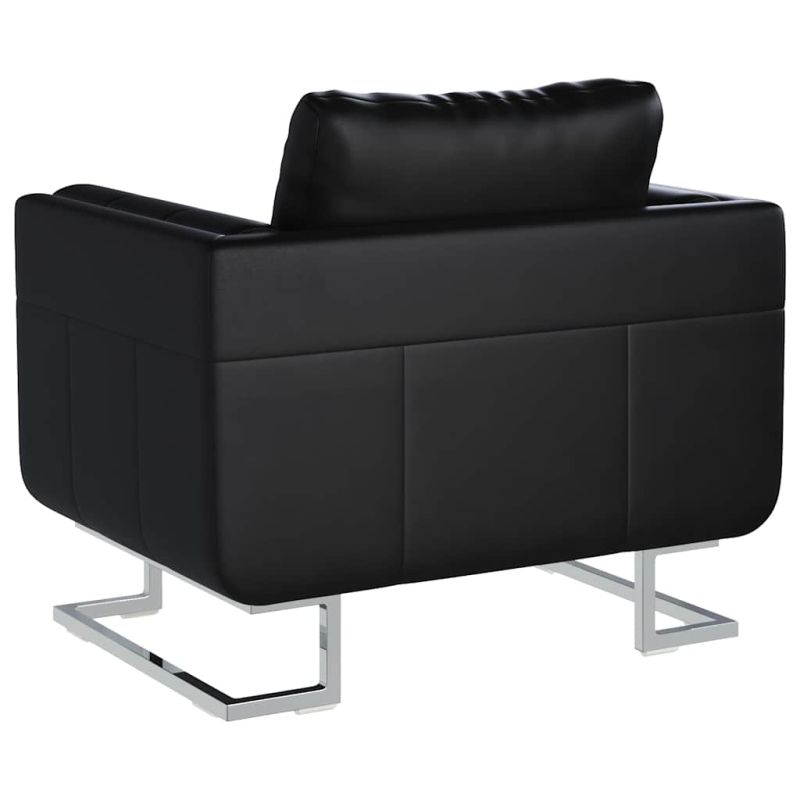 Кубичен фотьойл с хромирани крака, черен, изкуствена кожа