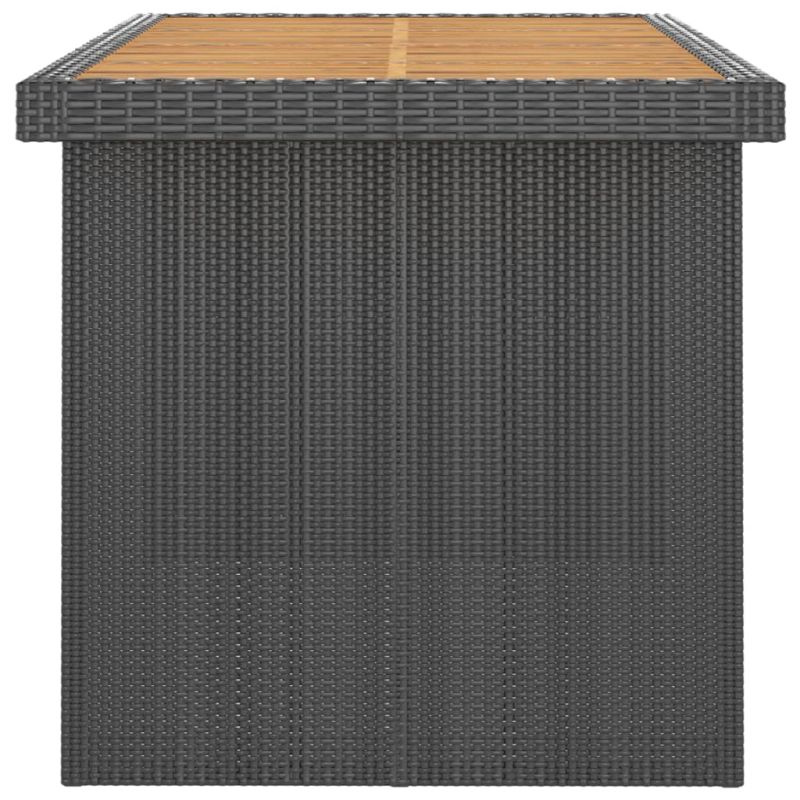 Този комплект за хранене на открито, с елегантен и съвременен дизайн, е привлекателно допълнение към вашето външно жилищно пространство. Комплектът градински мебели има здрава прахово боядисана стоманена рамка, която е много стабилна и издръжлива. PE ратанът прави трапезния комплект лесен за почистване, устойчив и подходящ за ежедневна употреба на открито. Плотът на масата е изработен от акациево дърво масив – тропическа твърда дървесина, която е устойчива на атмосферни влияния и издръжлива. Накланящите се столове предлагат пълен комфорт при седене и страхотна опора. Облегалката може да се регулира лесно според желанието ви с помощта на страничния бутон. Столовете с подложка за крака осигуряват допълнителен комфорт. При това плътните и меки възглавници за сядане и облягане са също изключително удобни. Забележка: Препоръчваме да покривате комплекта при дъжд, сняг и скреж за удължен експоатационен живот. Максимално 110 кг на седалка. Съобразете се с риска от открит огън и други източници на силна топлина в близост до продукта.