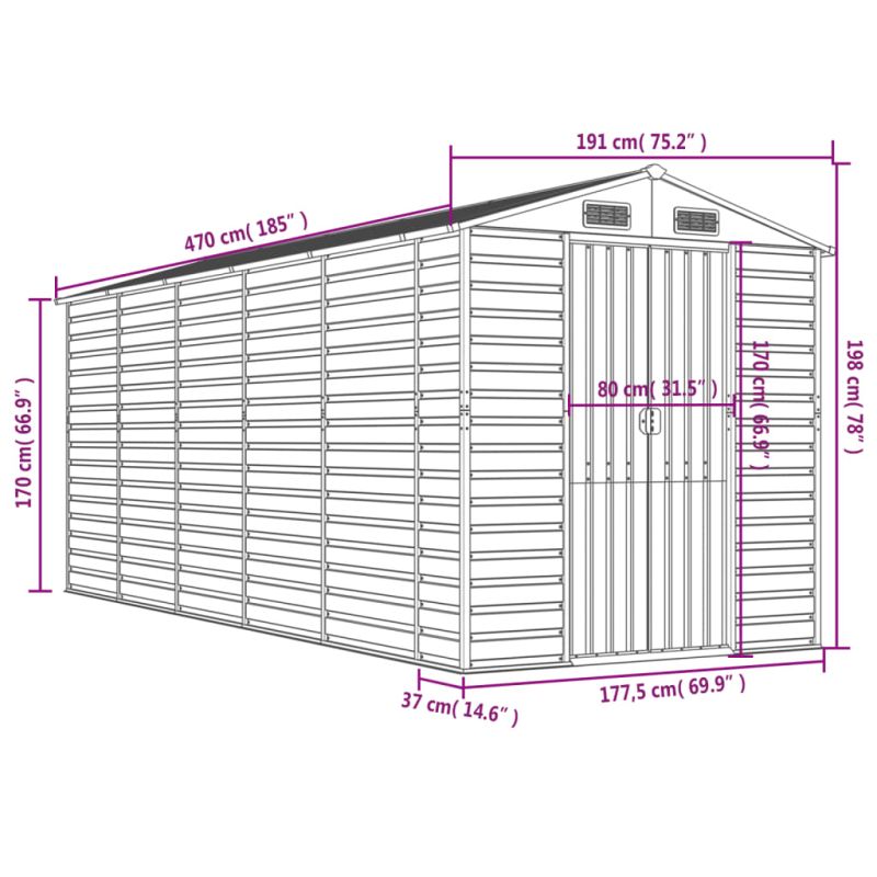 Градинска барака антрацит 191x470x198 см поцинкована стомана