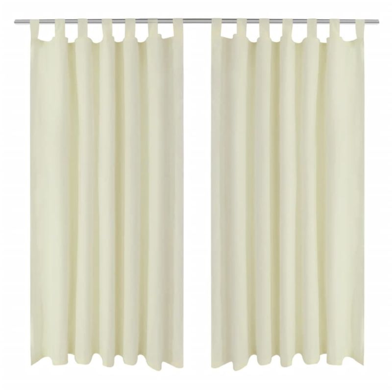 Завеси от микросатен с "уши", 2 бр, кремави, 140 x 225 см