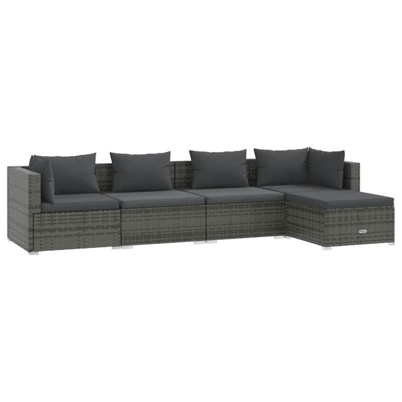 Градински лаундж комплект с възглавници 5 части полиратан сив